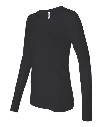 55%cotton 45% polyester 2.2 ounce ladies' custom burnout 36 singles jersey long sleeve t- shirt. Sheer and fitted throughout. Wide scooped rib neck trim. Ladies: S, M, L, XL, 2XL **Sizing runs slim, see our size chart in more photos or order sizes like "juniors" or "american apparel" sizing.