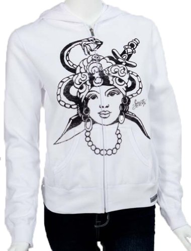 Junior's Old-School Traditional Gypsy by Sailor Jerry Fashion Tattoo Zip Hoodie Sweatshirt Jacket White (Small)