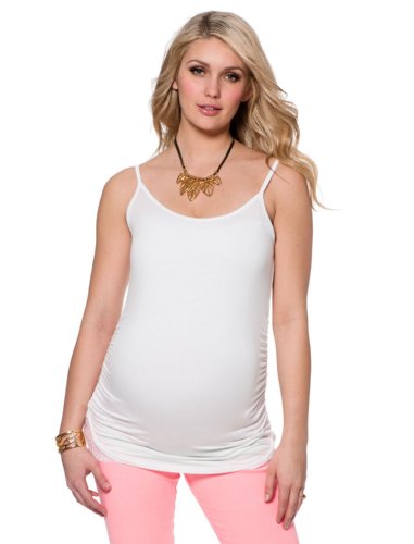 JESSICA SIMPSON ADJUSTABLE STRAP SIDE RUCHED LACE DETAIL AT WAIST SCOOP NECK POLY / RAYON / SPANDEX JERSEY KNIT MATERNITY CAMISOLE